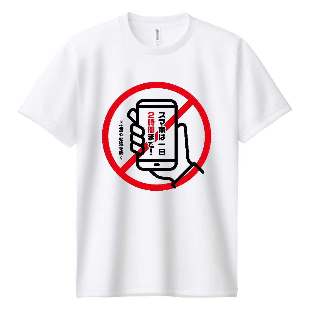 「スマホは一日2時間まで!(※仕事や勉強を除く)」というメッセージを、わかりやすい禁止マークでデザインしました。