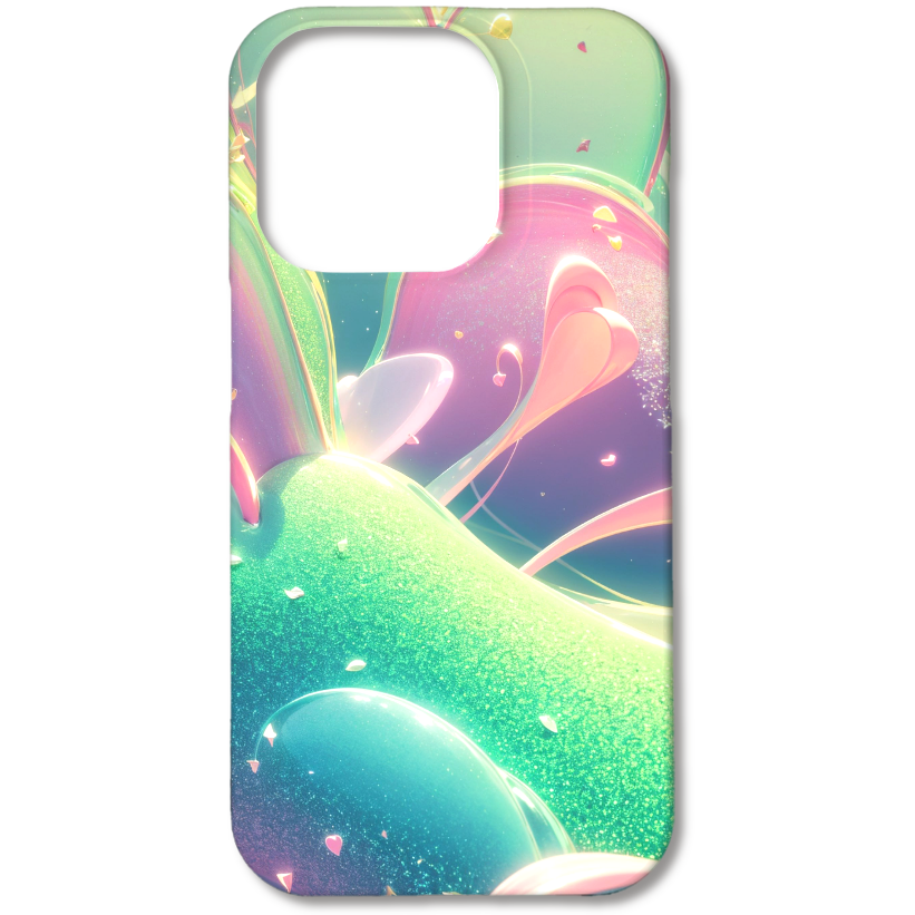 ピンク、グリーン、ブルーなどの優しい色が混ざり合い、幻想的なグラデーションを創り出しています。