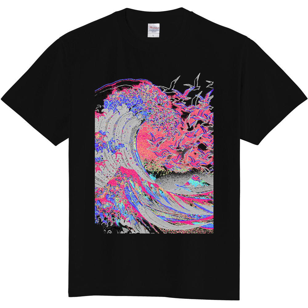 葛飾北斎「神奈川沖浪裏」へのオマージュを、現代の色彩感覚と大胆な構成で再構築。