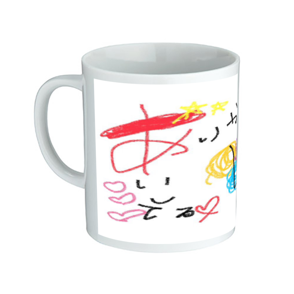 転写紙にインクをプリントし高温の熱をかけることで、インクを気化させマグカップに浸透させる加工方法です。マグカップに直接浸透させることで、表面には印刷した違和感(凸凹)が全く残りません。