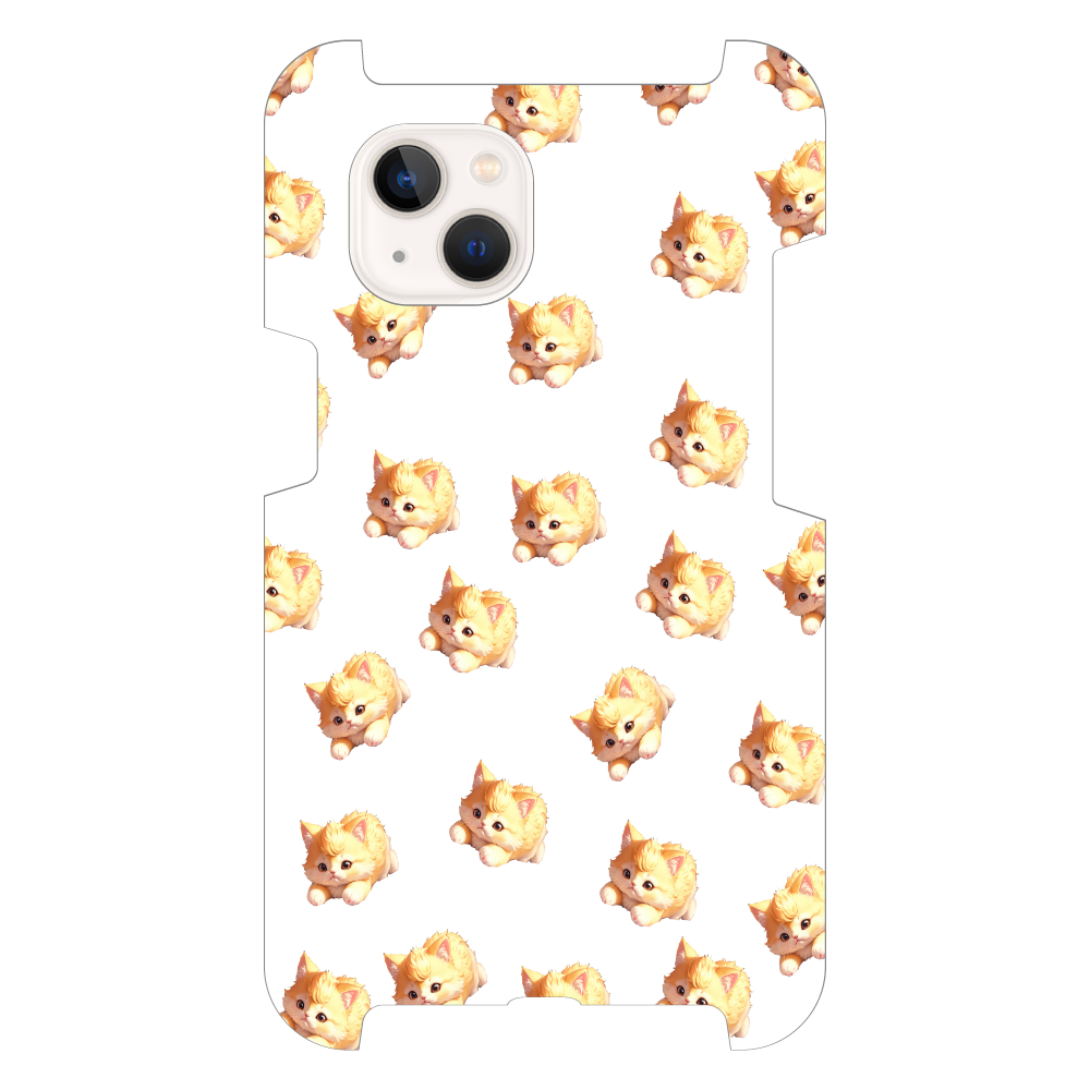 ふわふわで愛らしい金色の子猫が散りばめられた、とってもキュートなスマホケースです。まん丸な瞳とピンクの小さな耳がたまらない可愛さ♪