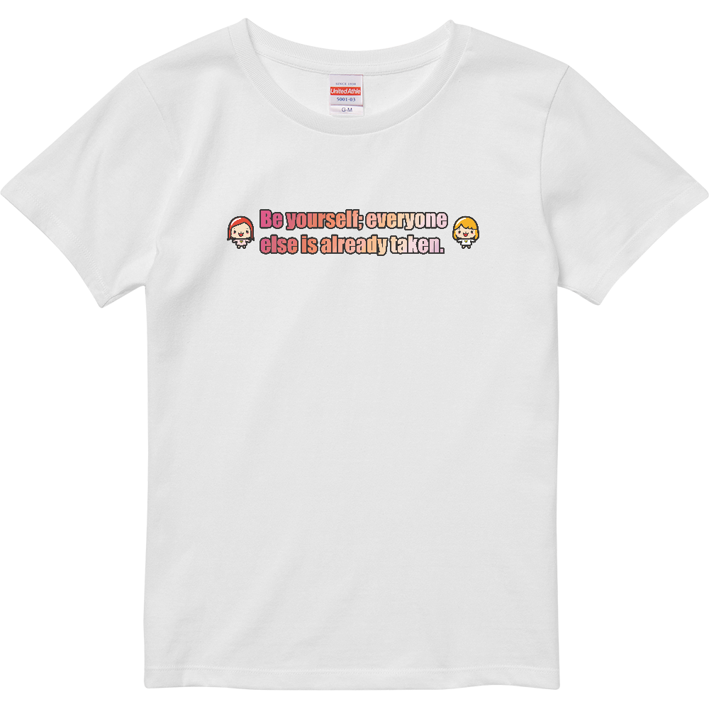 「Be yourself; everyone else is already taken.」(自分らしくあれ。ほかの誰かにはなれないのだから)という、アイルランドの劇作家オスカー・ワイルドの心に響く名言をモチーフにしたオリジナルTシャツです。