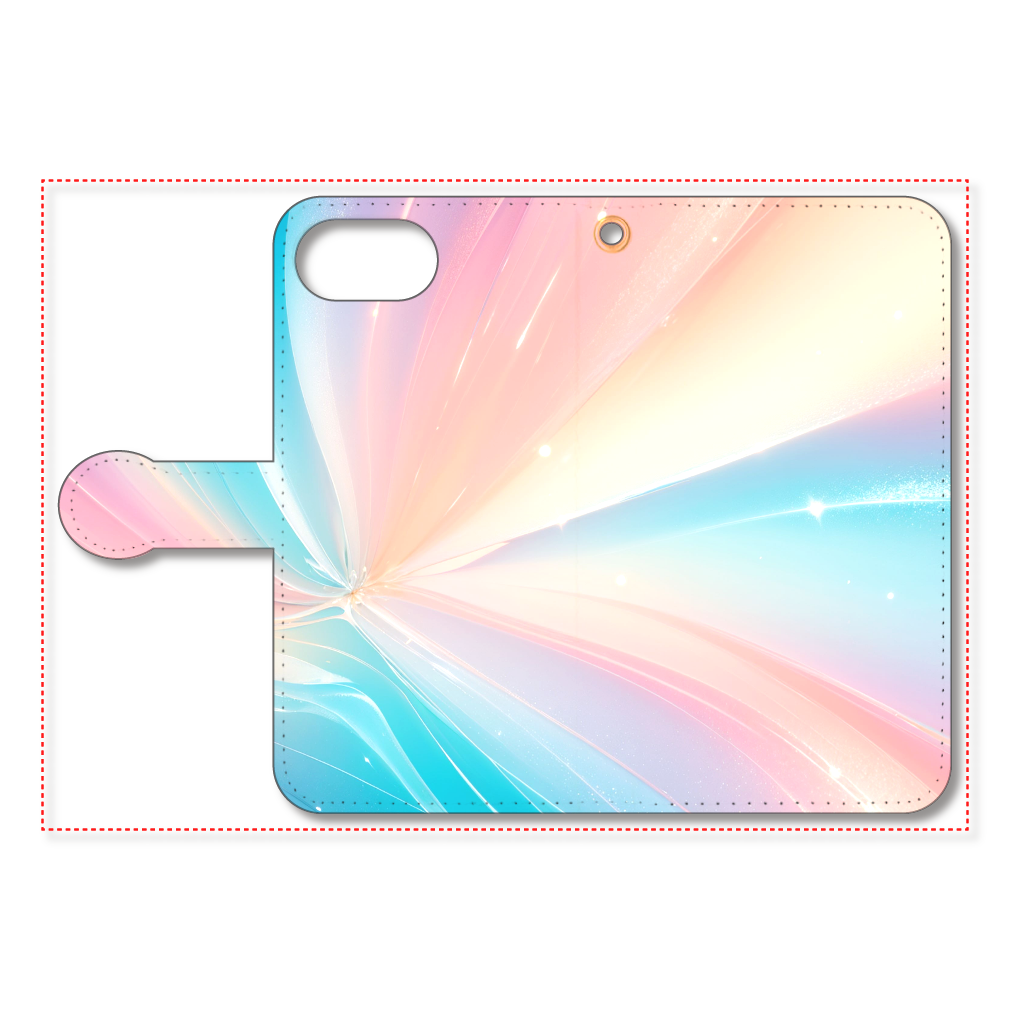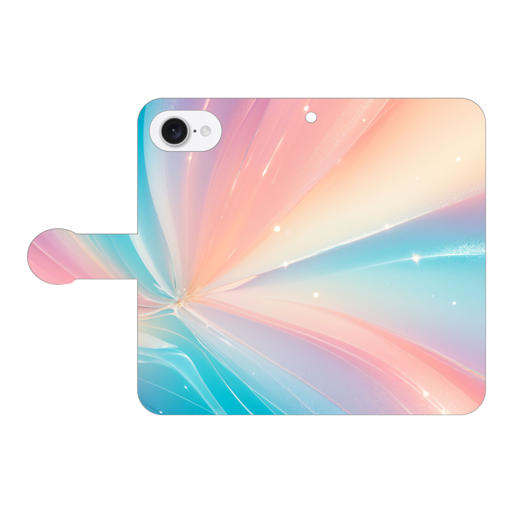 まるで魔法のステッキから放たれるキラキラの光みたい♡中央からふわっと広がるパステルレインボーがとっても可愛いスマホケースです