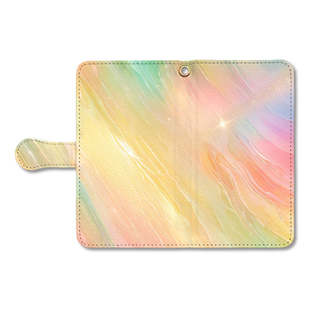 まるで雲の上でコットンキャンディーがふわふわ踊ってるみたい♡やわらかなパステルレインボーがゆらゆら流れる、とってもキュートなスマホケースです✨