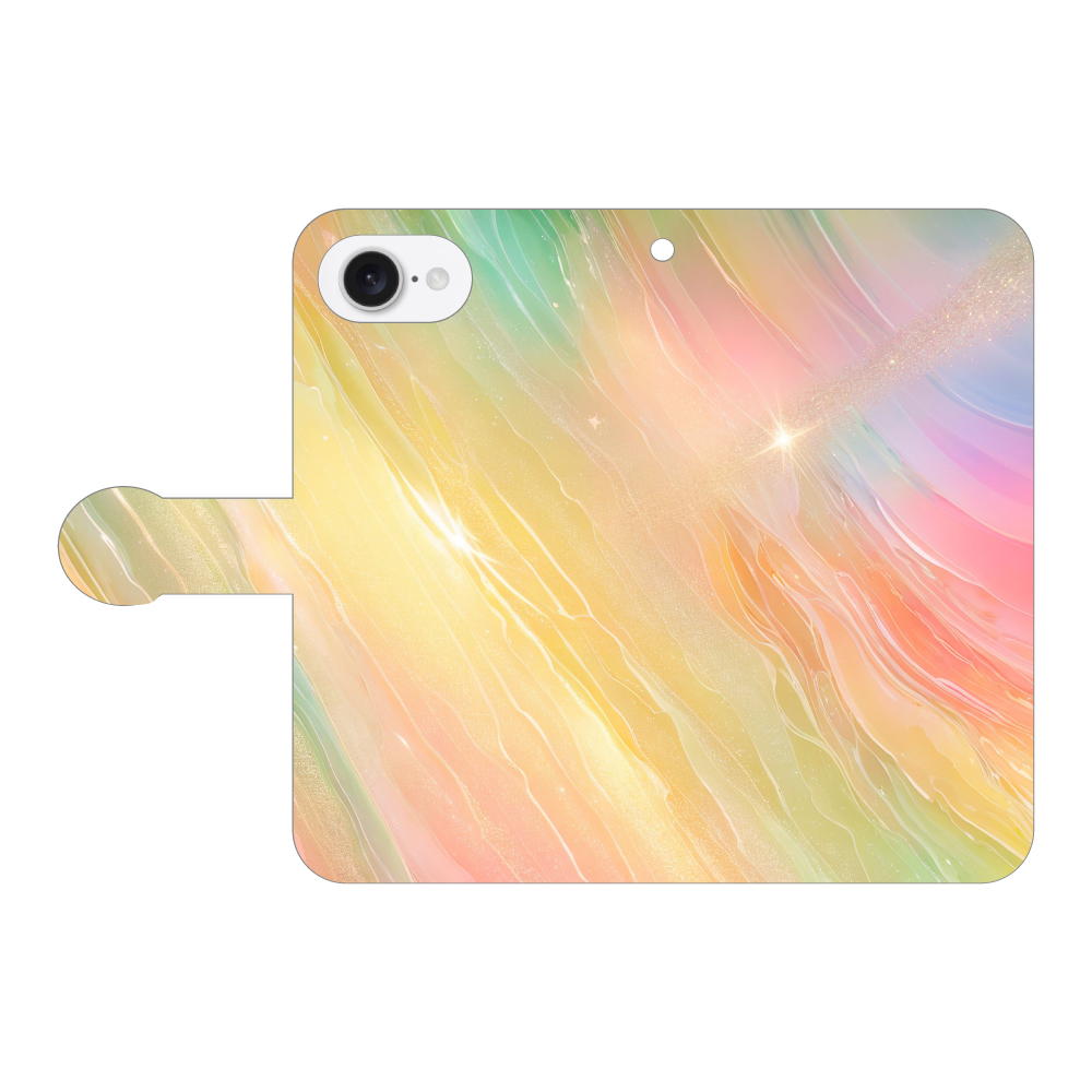 まるで雲の上でコットンキャンディーがふわふわ踊ってるみたい♡やわらかなパステルレインボーがゆらゆら流れる、とってもキュートなスマホケースです✨