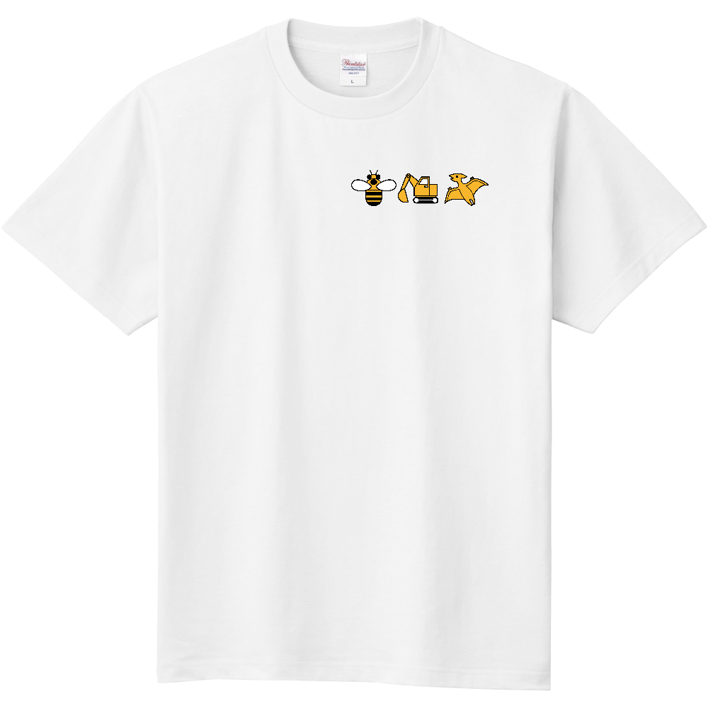 【黄色いもの】定番大人Tシャツ ミツバチ・ショベルカー・プテラノドン