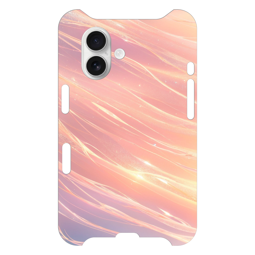 柔らかなピンクとゴールドが織りなす、幻想的なスマホケースです。繊細なラインと、きらめく光の粒が、上品で洗練された印象を与えます。どんなファッションにも合わせやすく、個性をさりげなくアピールできます。
