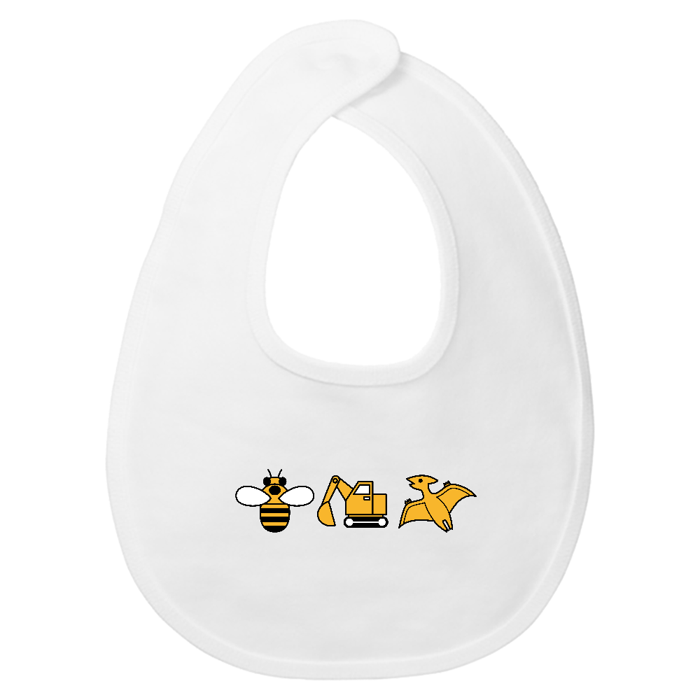 【黄色いもの】スタイ(よだれかけ) ミツバチ・ショベルカー・プテラノドン
