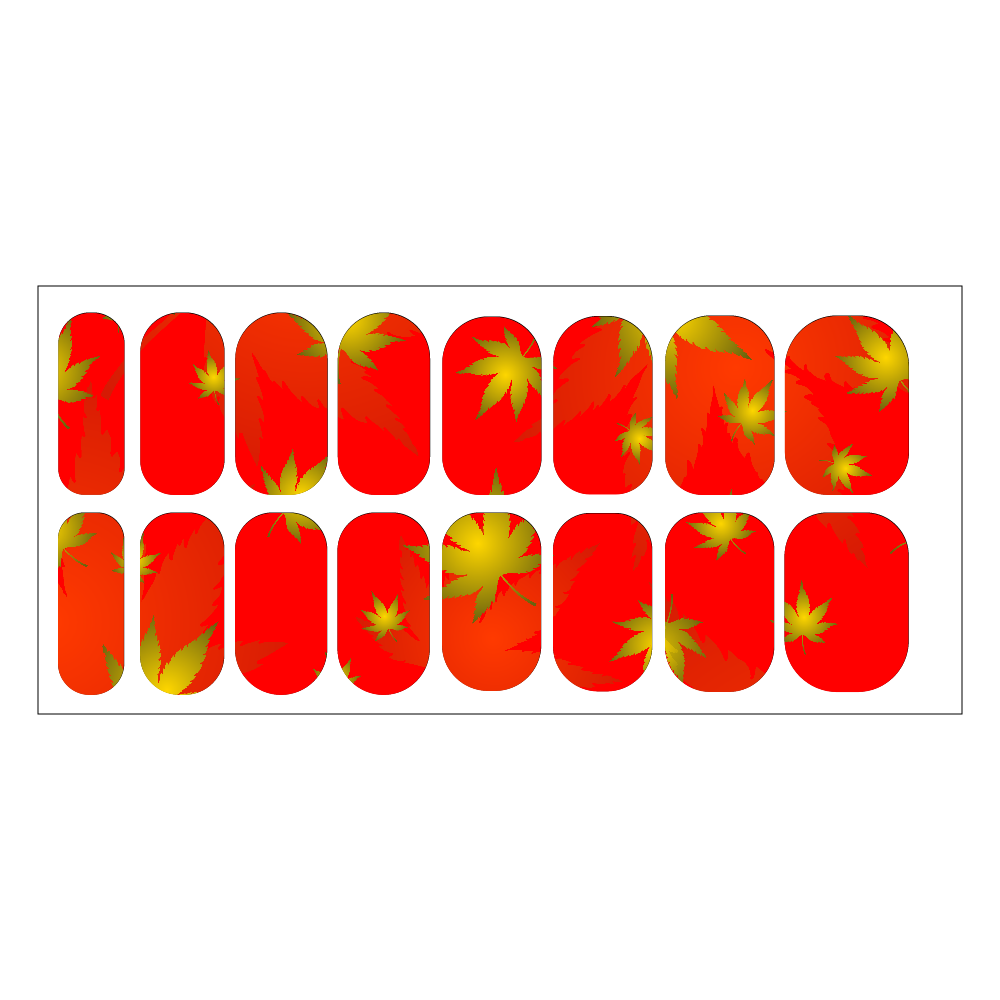 赤にゴールドのもみじが舞う落ち着いた印象ののネイルシールです。