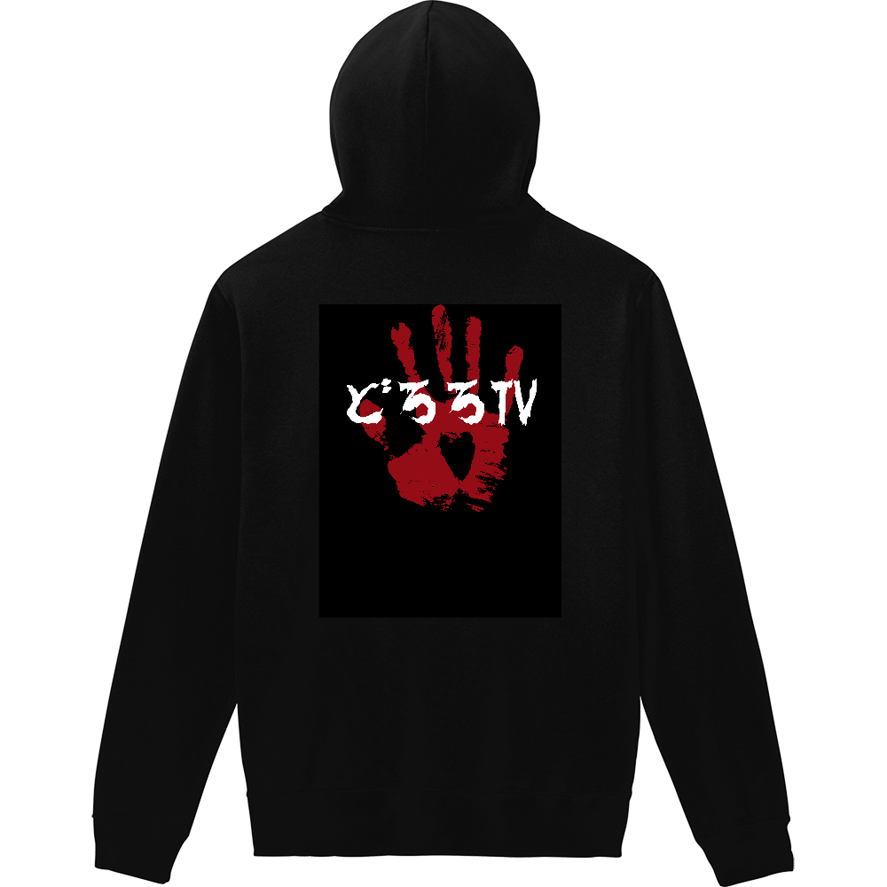 どろろTV オリジナルパーカー デザインがバックにプリントされています。