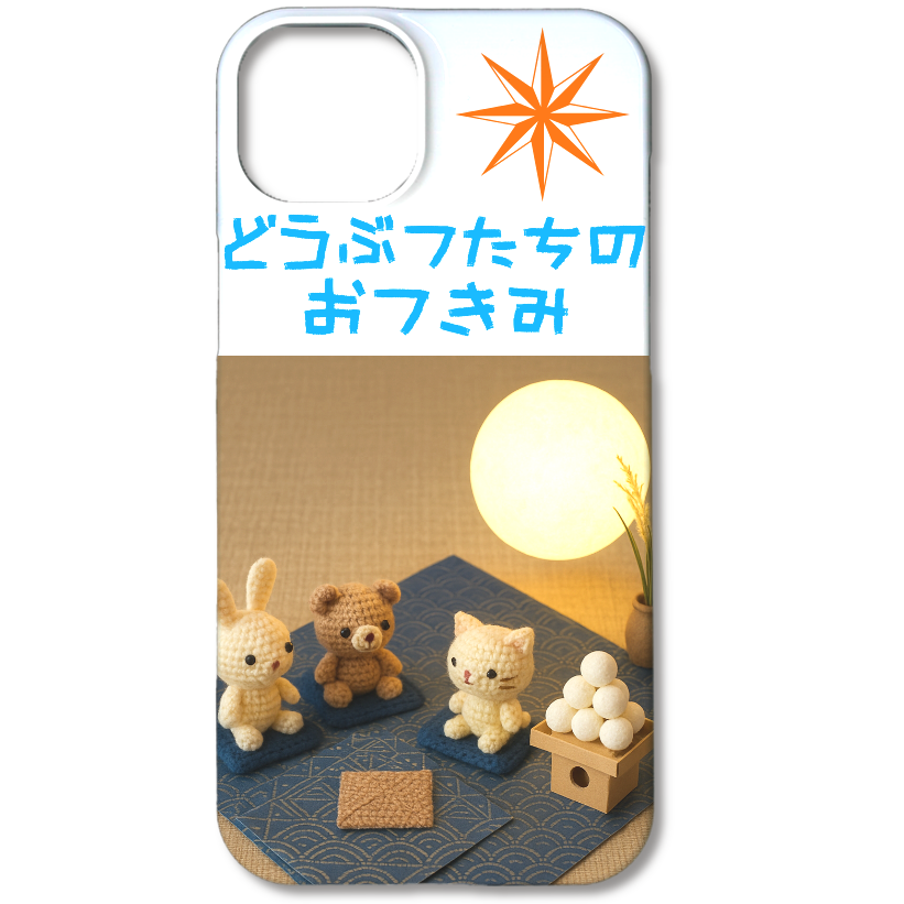 電気スタンドを使って毛糸のどうぶつ達が お月見をしてるようです。