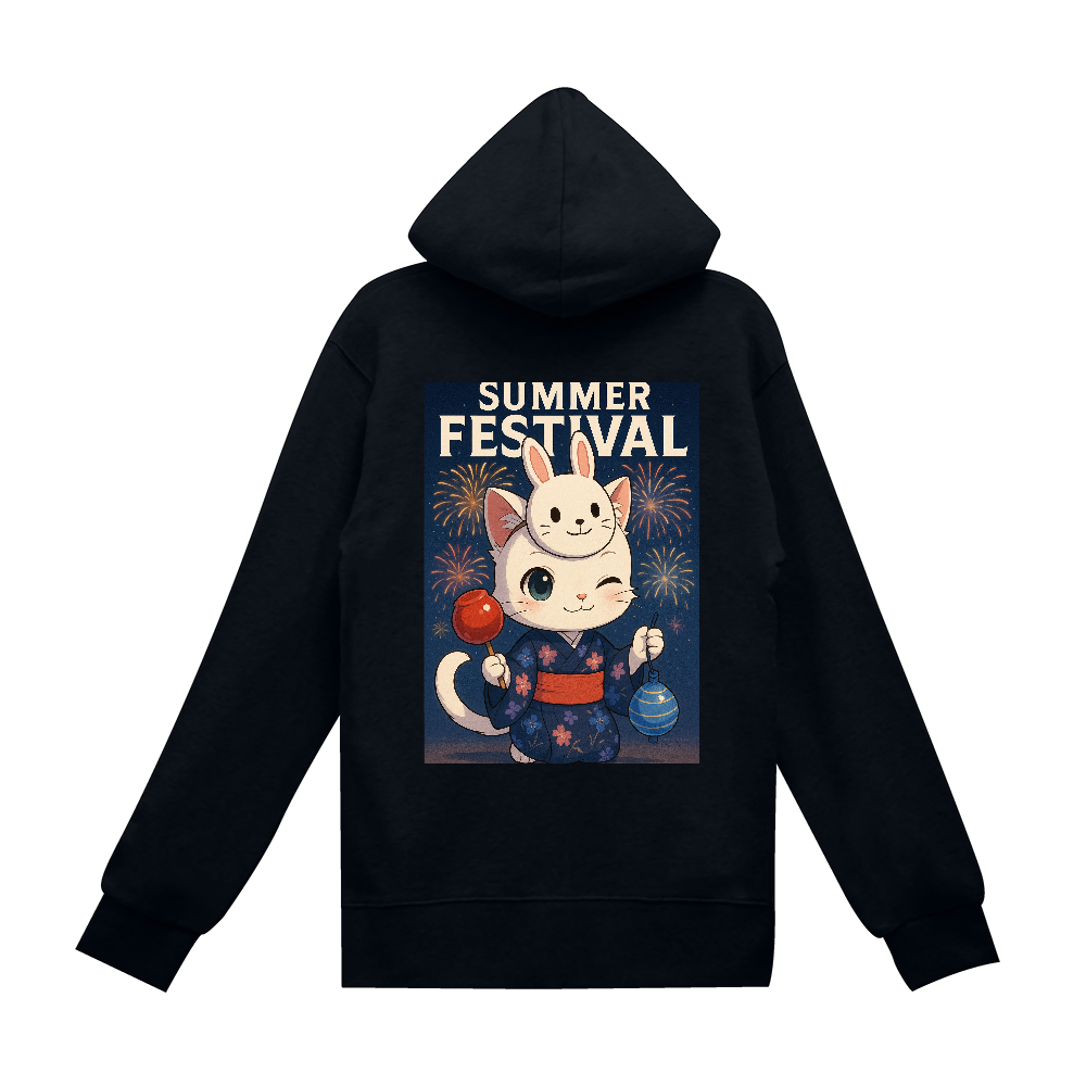 夏の夜を彩る花火と、浴衣姿のキュートなミミィがデザインされた特別な一枚。