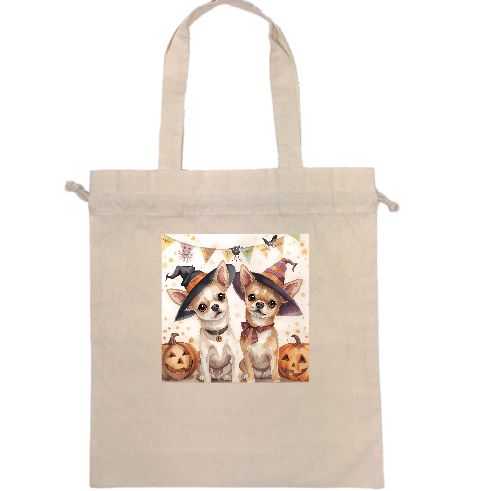 【ハロウィンシリーズ】チワワ|厚手コットンガゼット巾着トート(L)