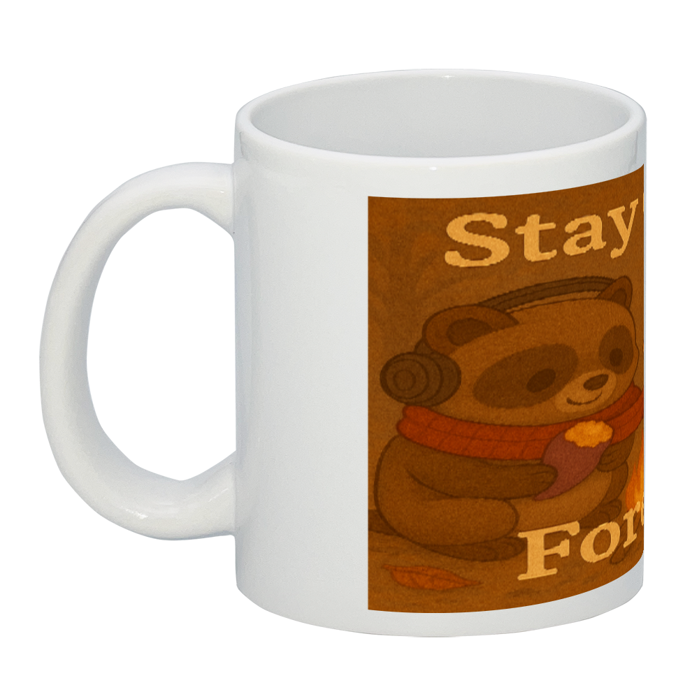 1本のマフラーで繋がり、焚き火を囲んで焼き芋を楽しむ姿に、心が温まるデザインです。