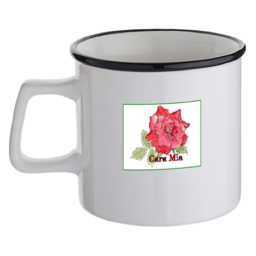 転写紙にインクをプリントし高温の熱をかけることで、インクを気化させマグカップに浸透させる加工方法です。マグカップに直接浸透させることで、表面には印刷した違和感(凸凹)が全く残りません。