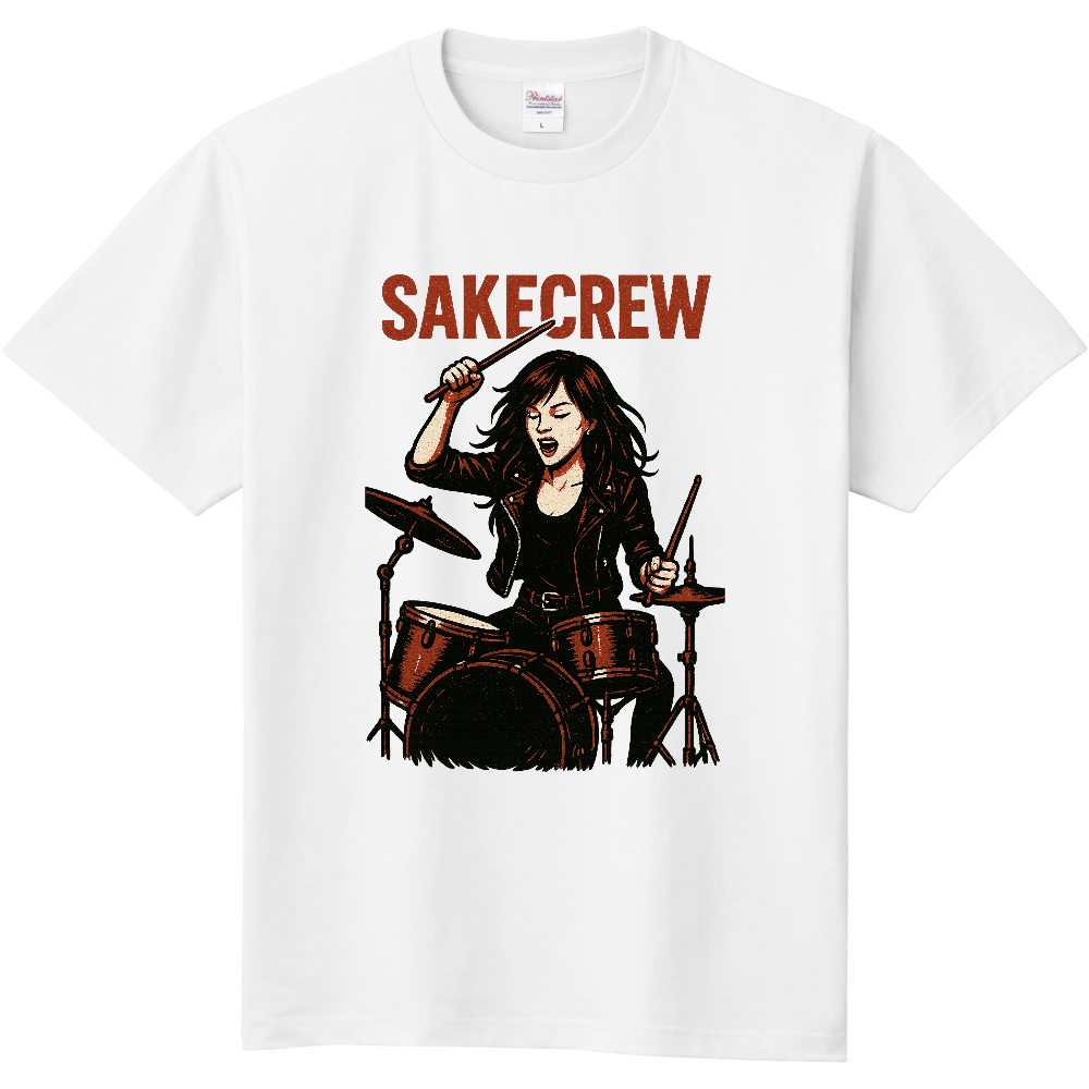 「SAKECREW」のロゴはグランジ調のフォントで配置。