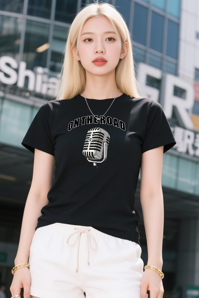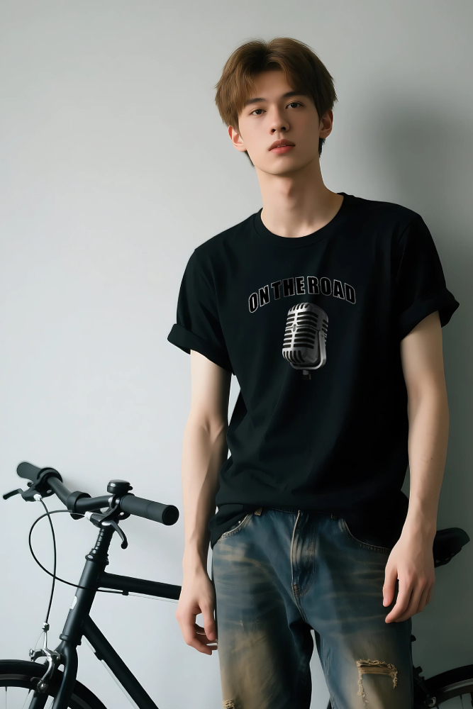 【ON THE ROAD】旅の始まりはいつもここから。ヴィンテージ感あふれるロゴと、ノスタルジックな雰囲気を醸し出すクラシックなマイクのイラストが目を引くデザインTシャツです。