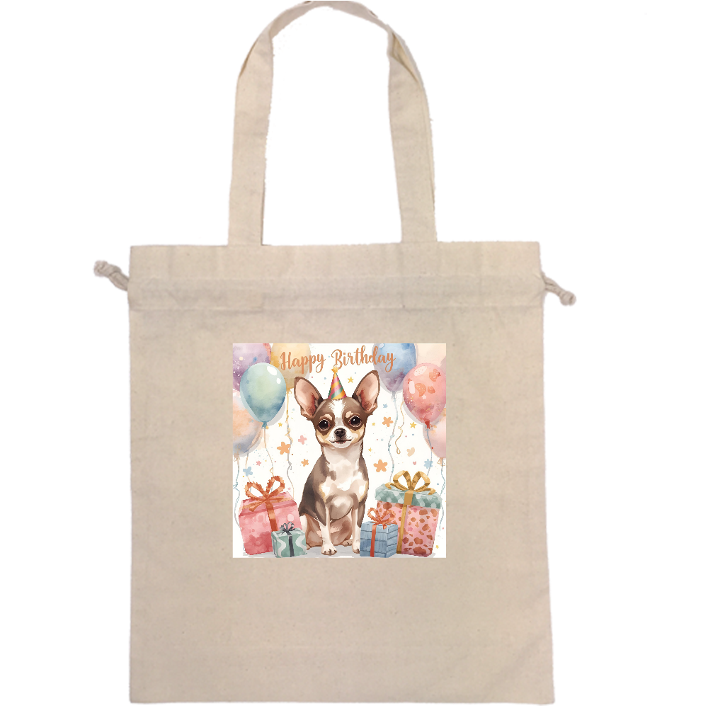 【Birthday Paws】チワワ・チョコレート&ホワイト|厚手コットンガゼット巾着トート(L)