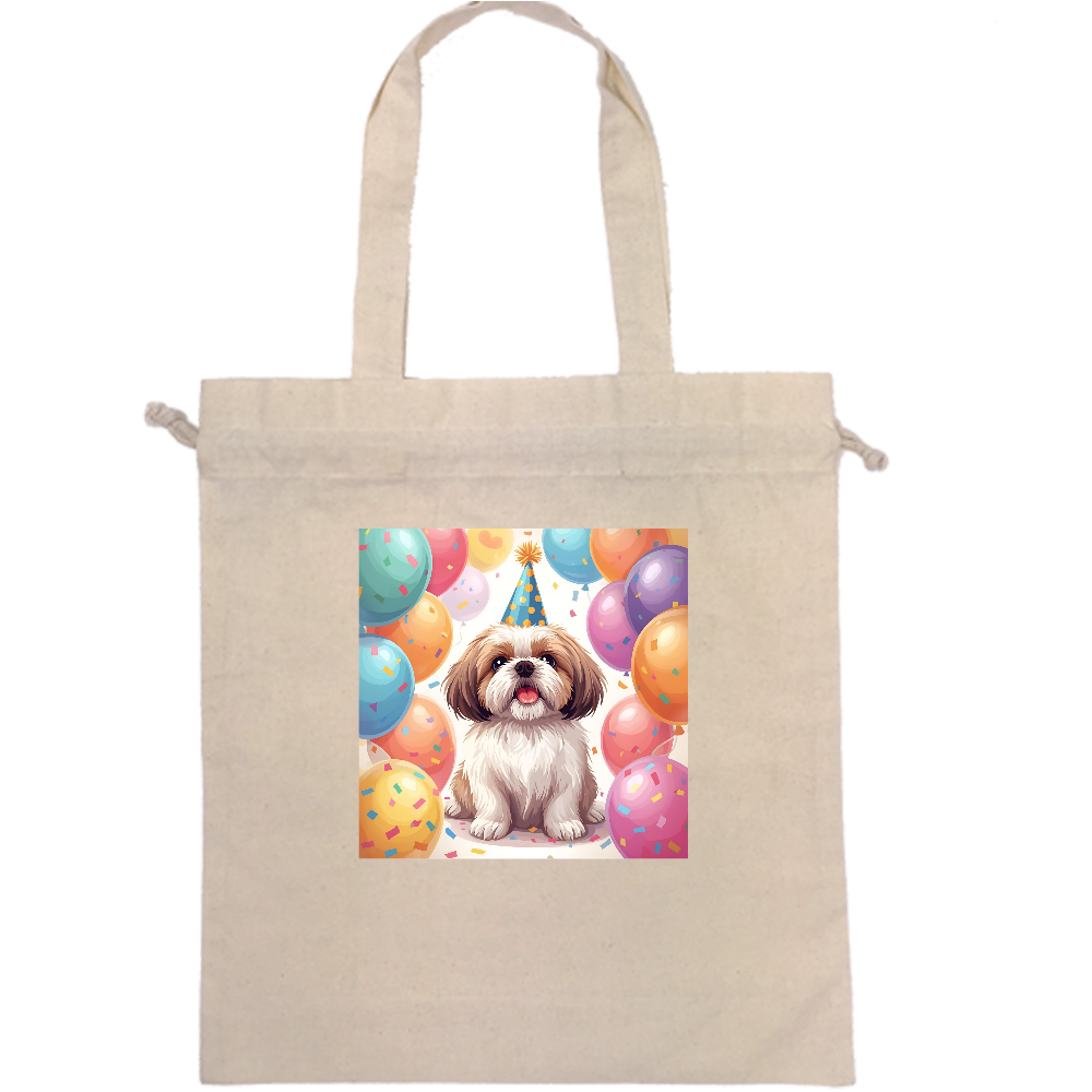 シーズー【ハピパピパーティー】厚手コットンガゼット巾着トート(L)
