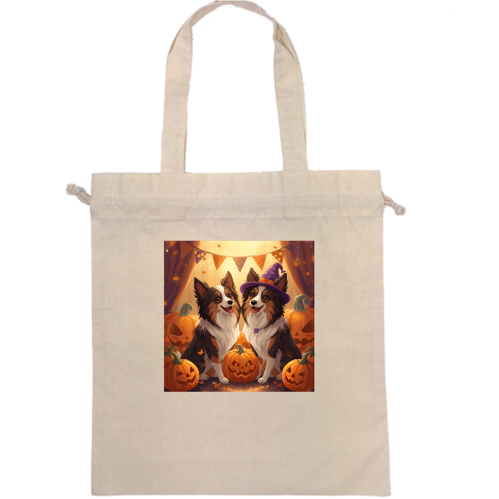【ハロウィンシリーズ】ラフコリー(セーブル&ホワイト/トライカラー)|厚手コットンガゼット巾着トート(L)