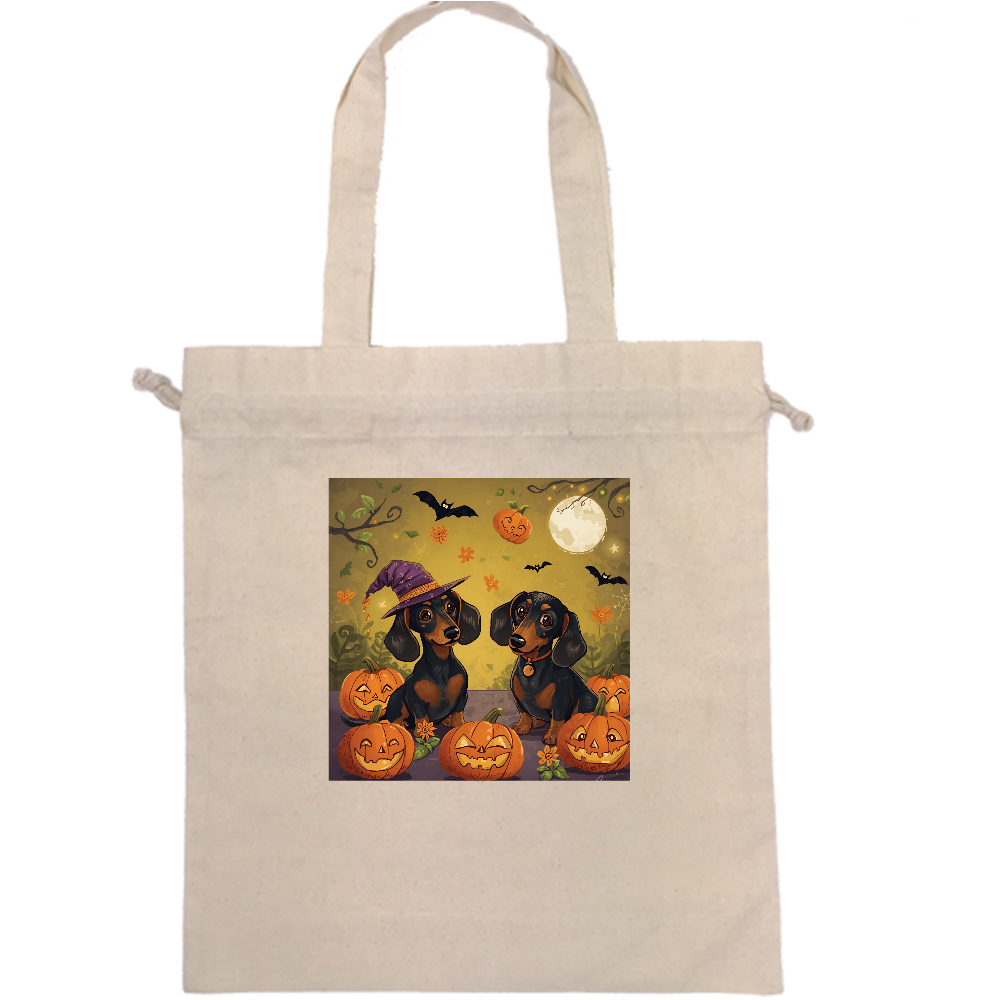 【ハロウィンシリーズ】カニヘンダックスフント|厚手コットンガゼット巾着トート(L)