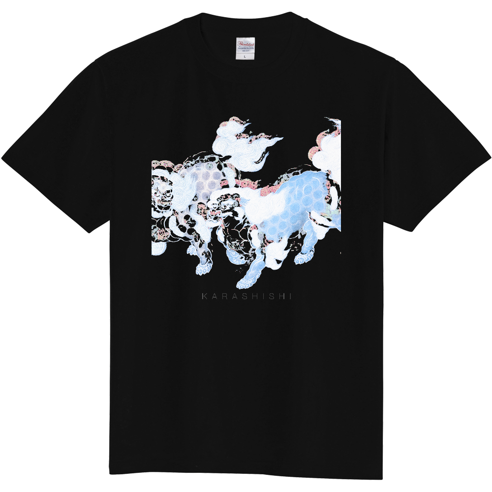 伝統的なモチーフをモノトーン調にアレンジし、モードにもストリートにもフィットするデザインに仕上げました。唐獅子らしさを抑え、どんなスタイルにも溶け込む1枚です。