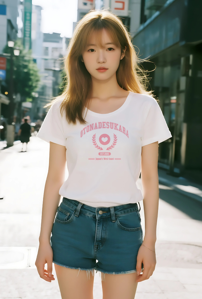 この「OTONADESUKARA(大人ですから)」Tシャツは、日本の「大人カワイイ」文化をテーマにしたデザインです。シンプルなピンクのロゴとハートが、どんなスタイルにも合わせやすい柔らかな雰囲気を演出します。