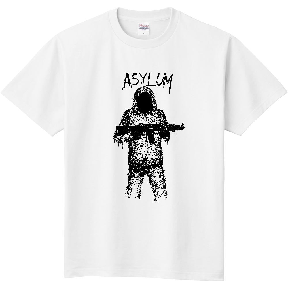【ASYLUM】Shadow Gunner ストリートアートTシャツ - ダークアパレル スケッチ風デザイン