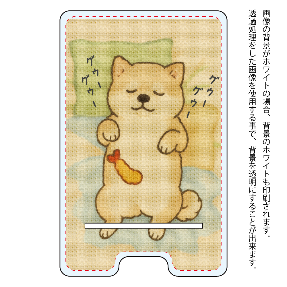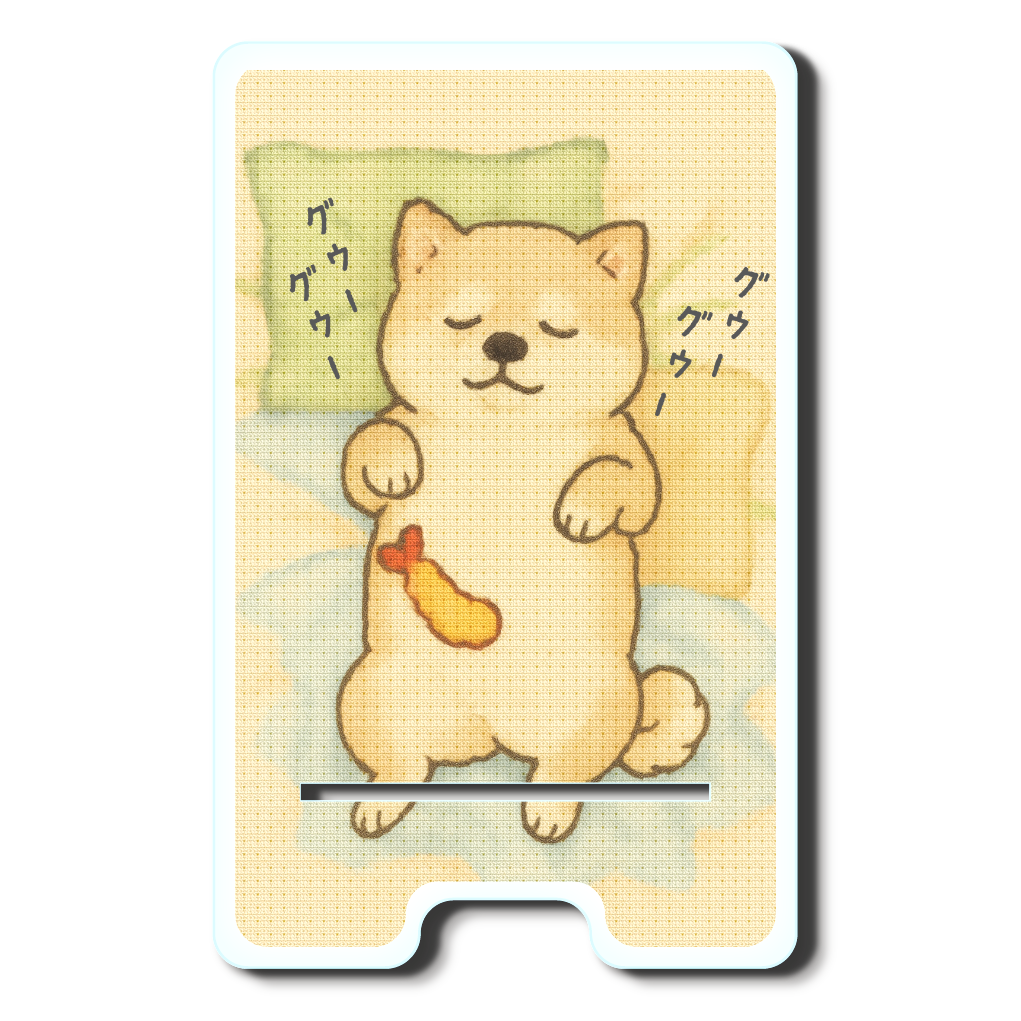 お腹の上にエビ天を乗せて熟睡する豆しば君 刺繍風