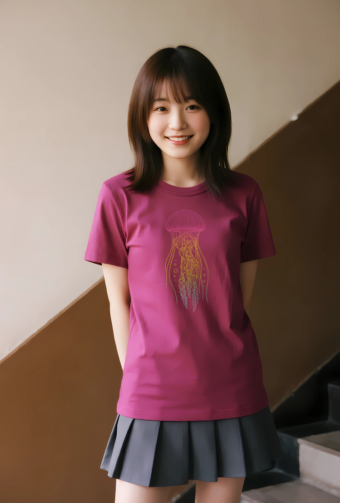 【アマクサクラゲ】グラデーション・クラゲTシャツ:ゆらめく海中を纏う幻想的なデザイン