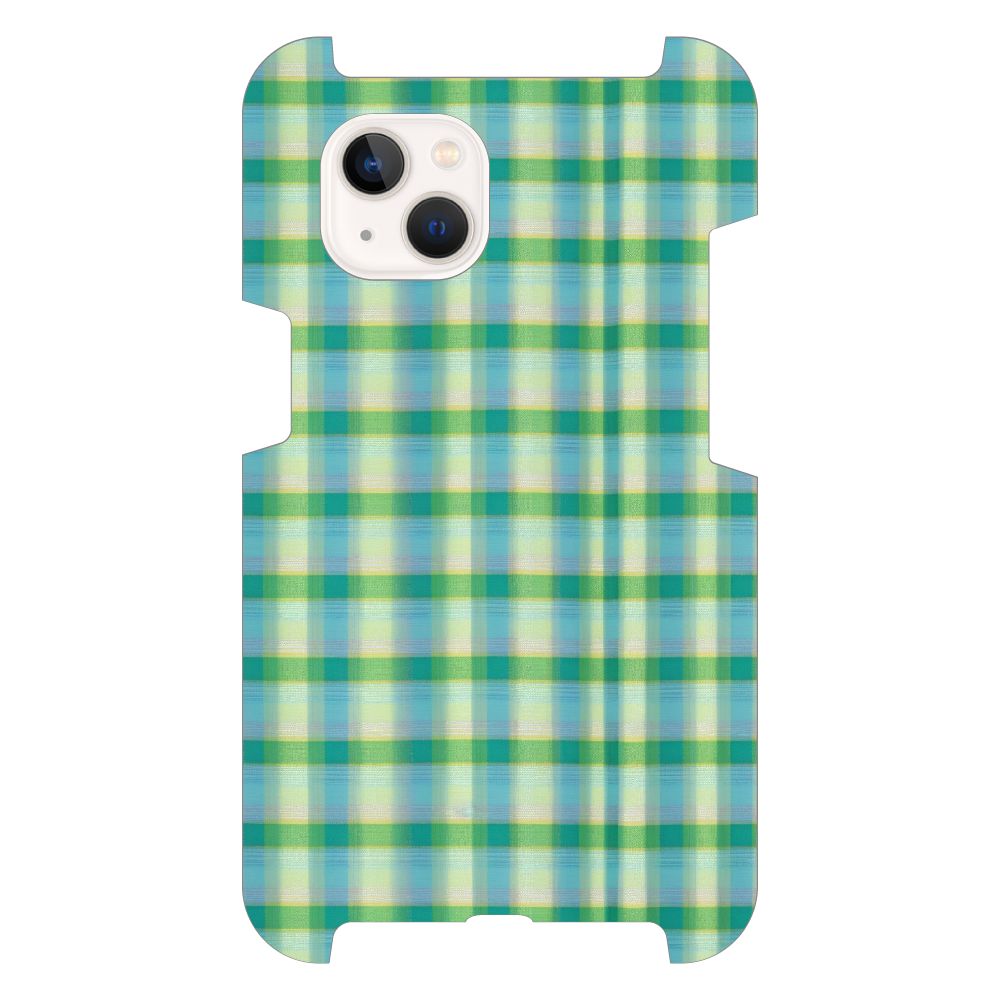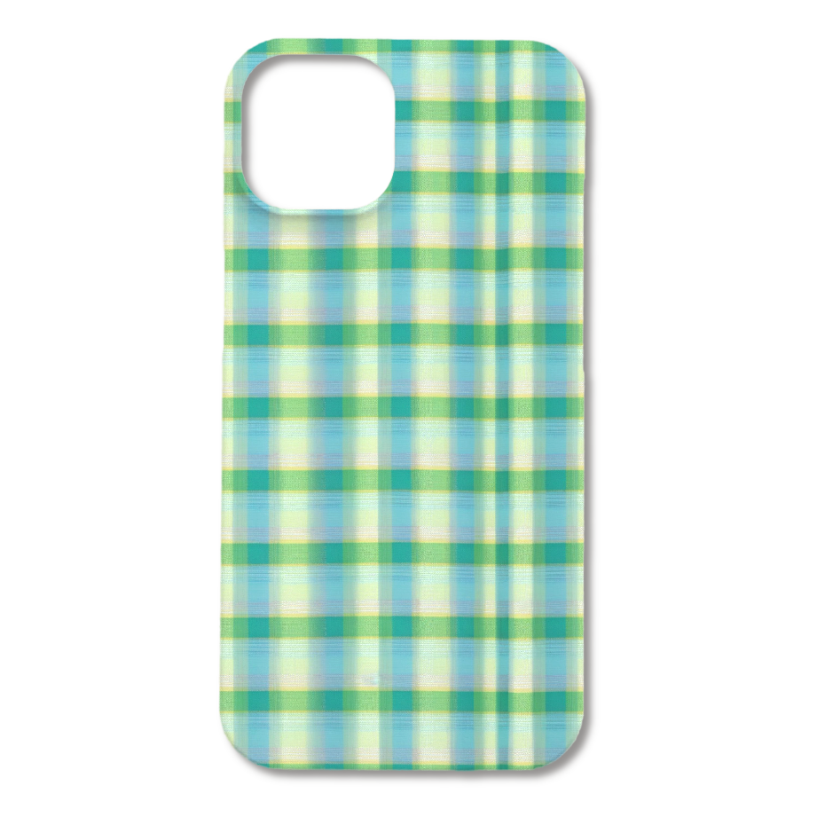爽やかなミントグリーンとブルーの落ち着いたトーンでまとめられた、チェック柄のスマホケースです。どこか懐かしさを感じるクラシックなパターンに、現代的なカラーパレットを組み合わせました。手描き風の温かみのあるテクスチャが、シンプルながらも個性を引き立てます。