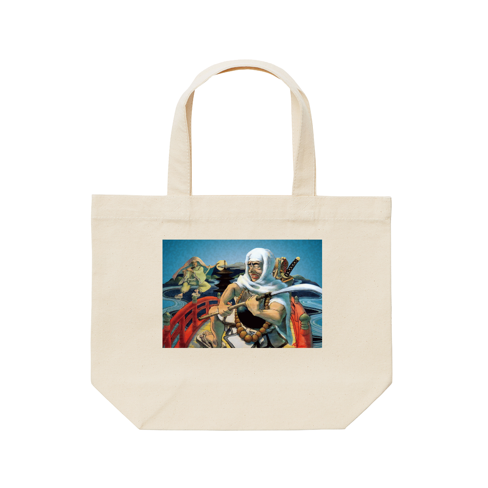 京の五条の橋の上で出会う薙刀を持つ弁慶と笛を吹く牛若丸