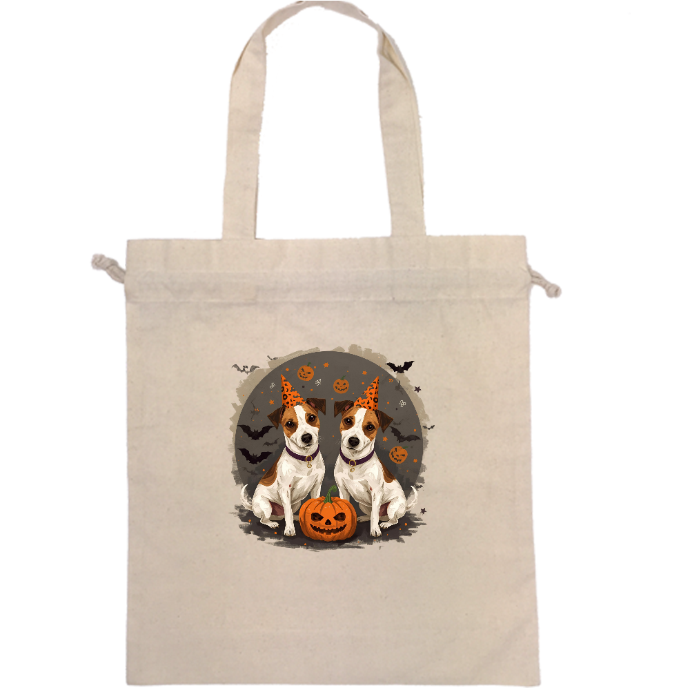 【ハロウィンシリーズ】ジャックラッセルテリア|厚手コットンガゼット巾着トート(L)