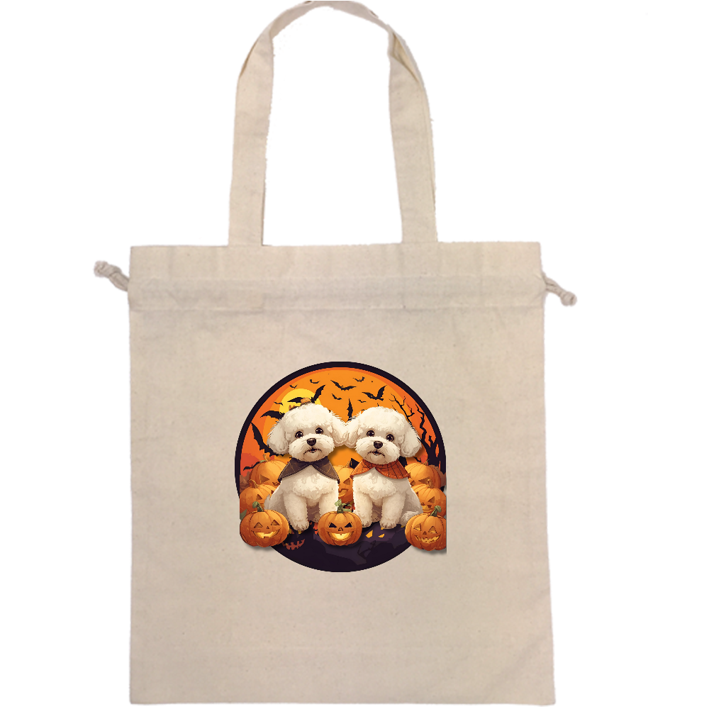 【ハロウィンシリーズ】ビションフリーゼ|厚手コットンガゼット巾着トート(L)