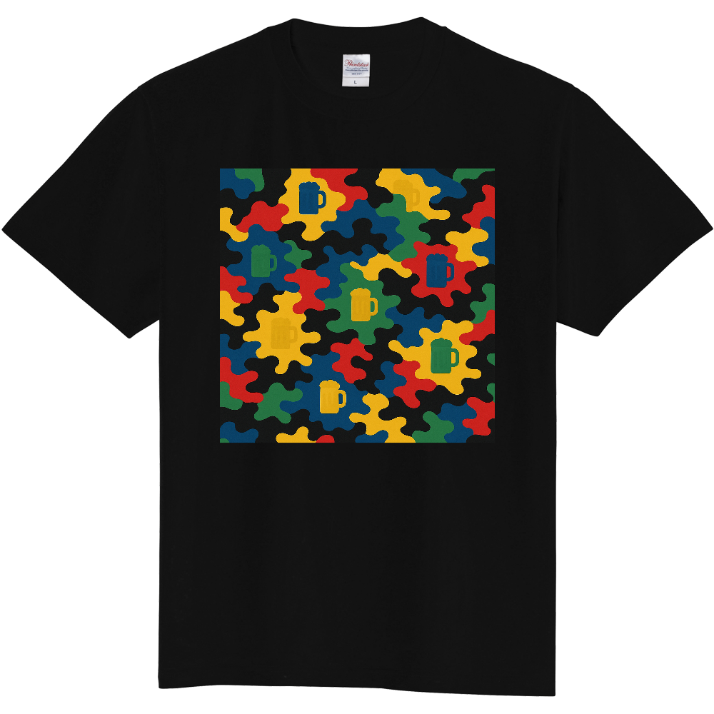 ビールジョッキを迷彩の中に隠し、遠目では本格的なカモ柄、近づけば「乾杯」が見えてくる──。