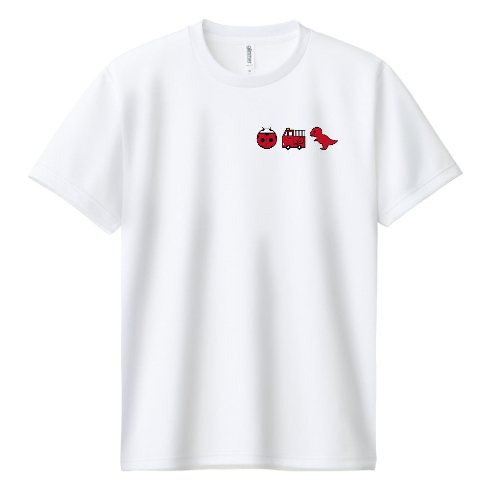 【赤いもの】ドライTシャツ|テントウムシ・消防車・ティラノサウルス