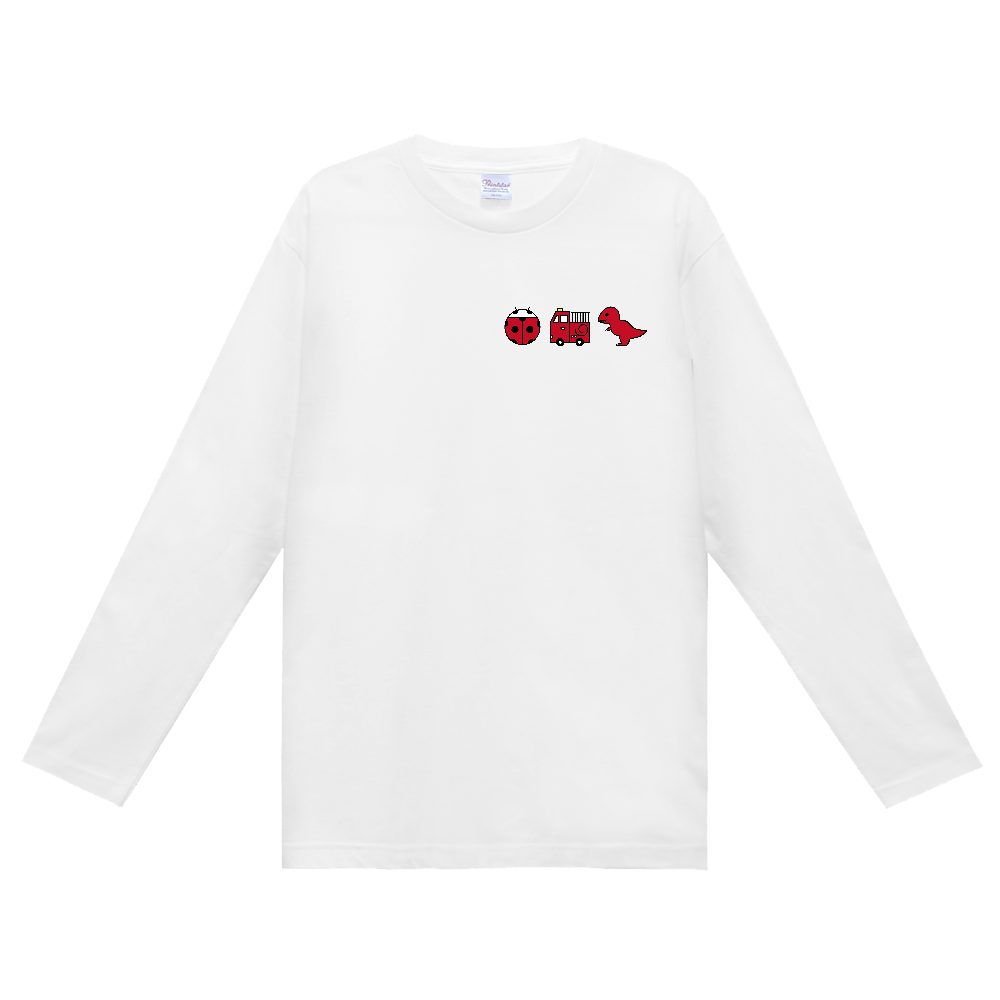 【赤いもの】定番長袖Tシャツ|テントウムシ・消防車・ティラノサウルス