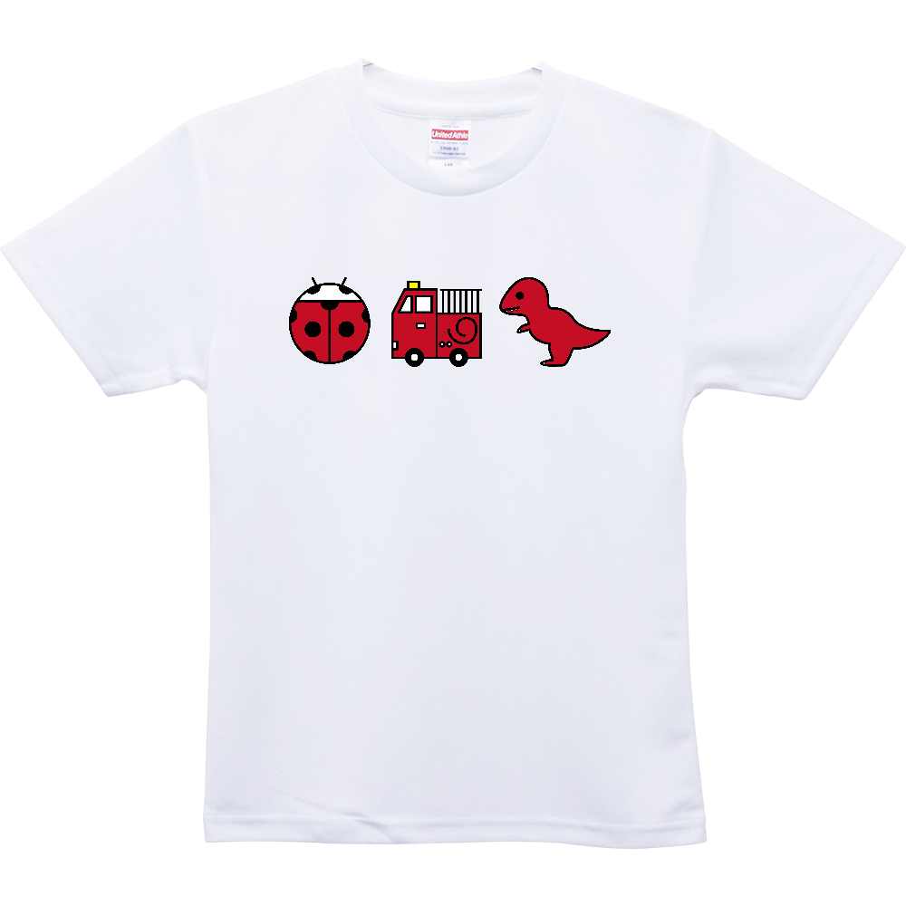 【赤いもの】ドライアスレチックキッズTシャツ|テントウムシ・消防車・ティラノサウルス