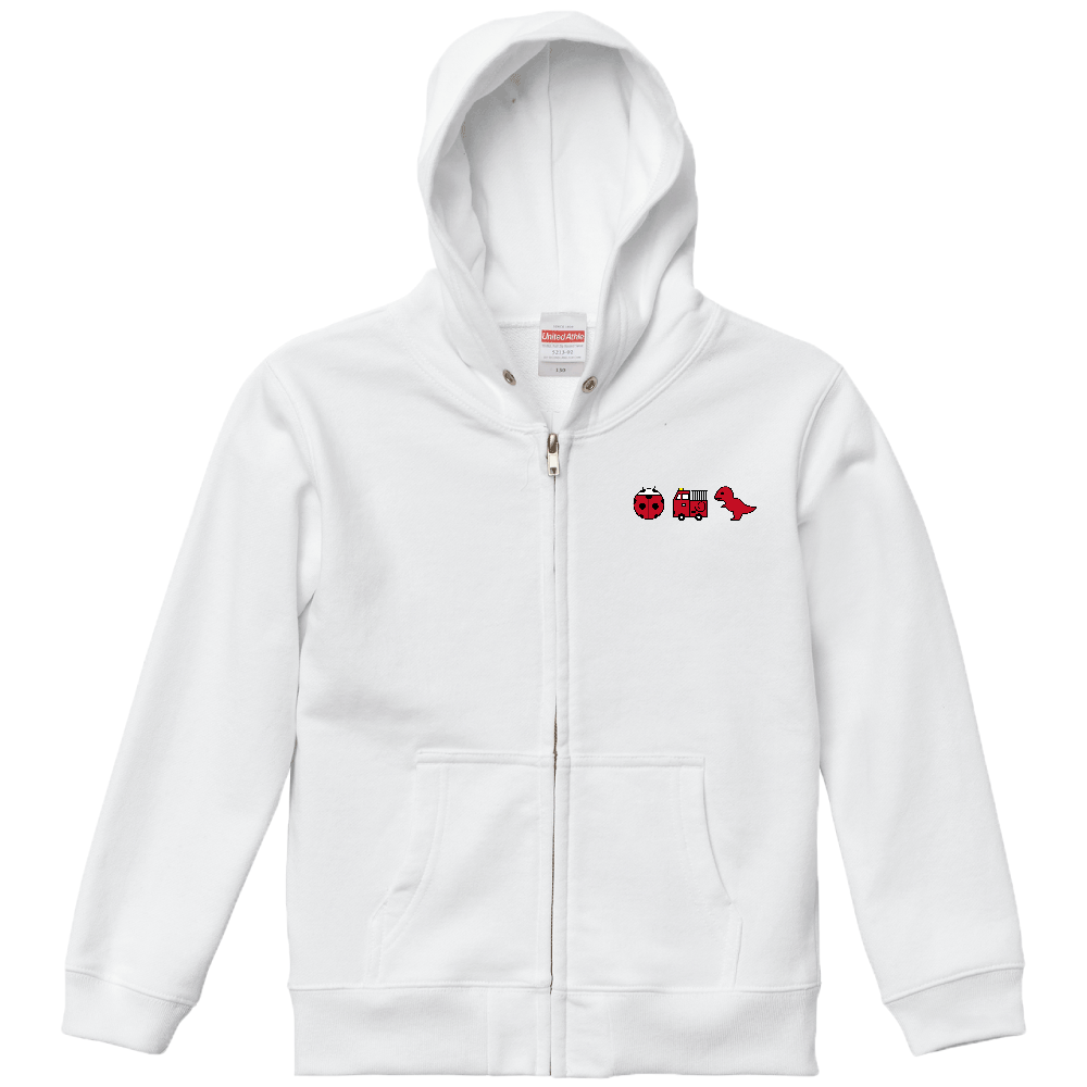 【赤いもの】スウェットフルジップパーカーキッズ|テントウムシ・消防車・ティラノサウルス