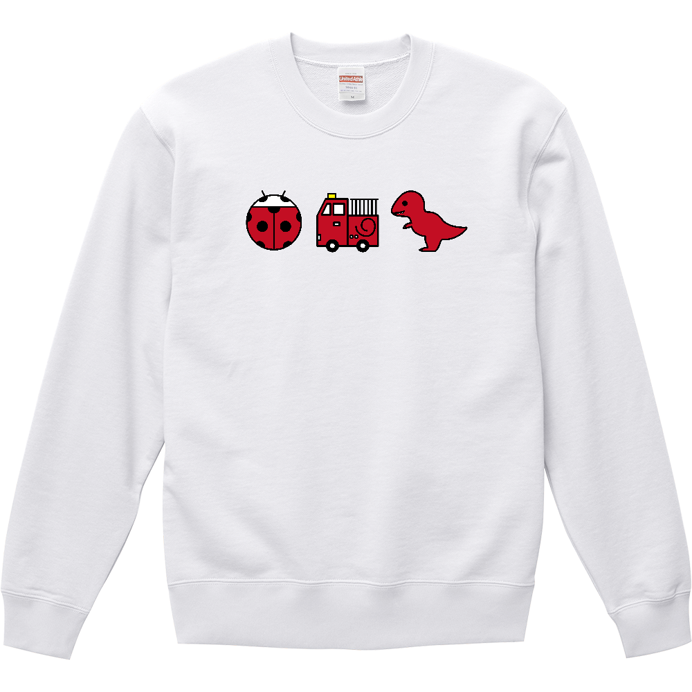 【赤いもの】クルーネックスウェットキッズ|テントウムシ・消防車・ティラノサウルス