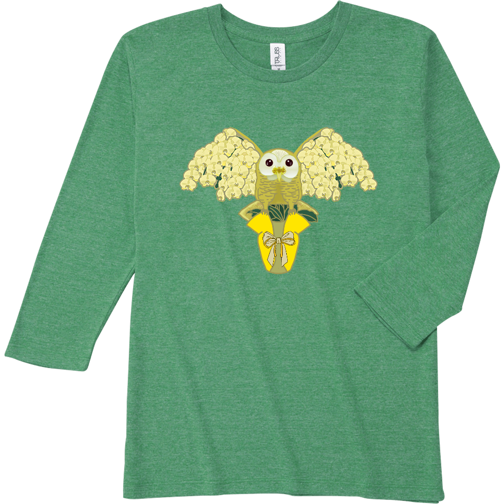 米寿お祝いにプレゼントするためのデザインにしました。全体的に色は、米寿の色である黄色にし、フクロウの顔と羽に胡蝶蘭を掛け合わせたイラストにしました。鉢植えのラッピングは、ちゃんちゃんこのような形にしました。