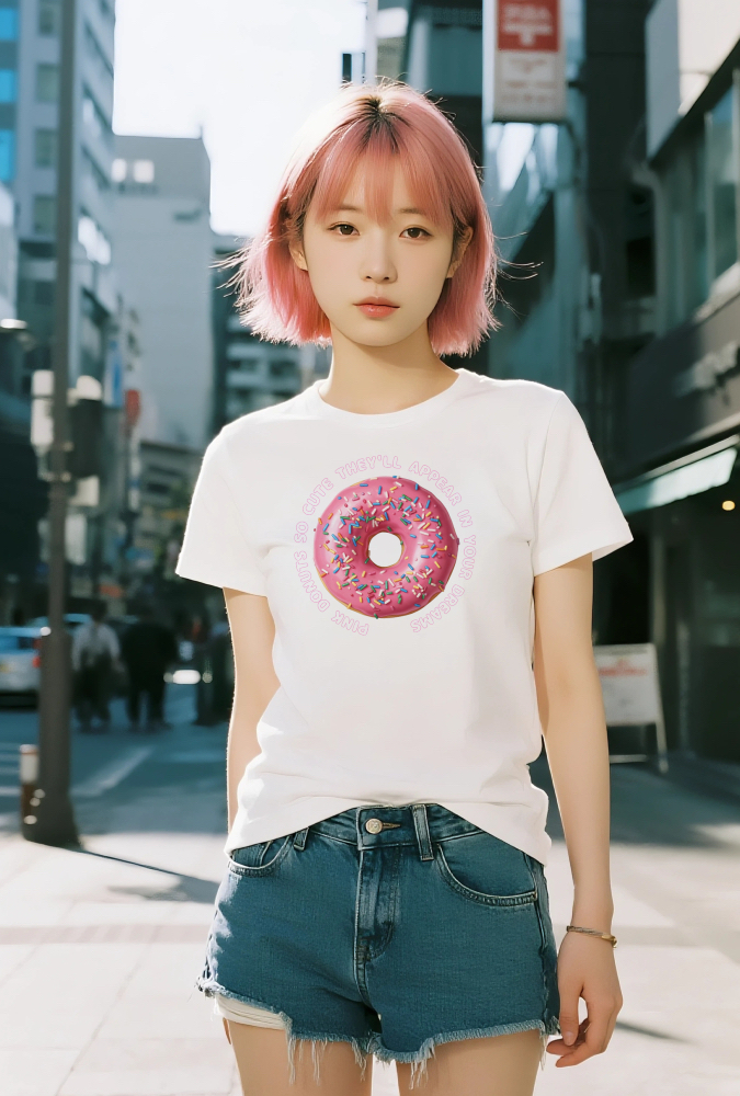 この「PINK DONUTS」Tシャツで、あなたの毎日が甘く、そして夢のような幸福感に満ちたものになりますように!