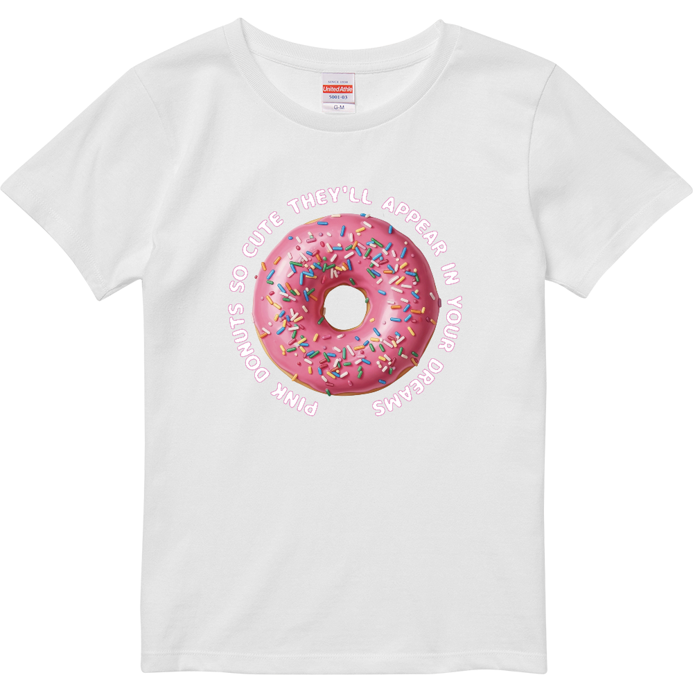 甘くてカラフルな夢を、あなたの日常に!「PINK DONUTS SO CUTE THEY'LL APPEAR IN YOUR DREAMS」Tシャツで、見るたびに笑顔になるようなハッピーな気分を!