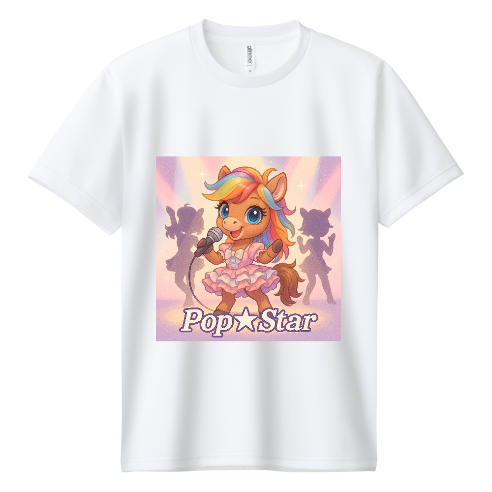 虹色の髪をなびかせて、フリル衣装でステージに立つアイドルホース。