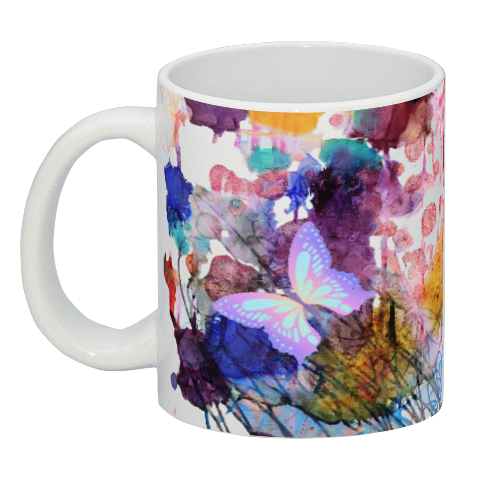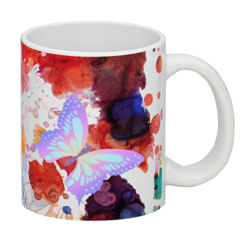 転写紙にインクをプリントし高温の熱をかけることで、インクを気化させマグカップに浸透させる加工方法です。マグカップに直接浸透させることで、表面には印刷した違和感(凸凹)が全く残りません。