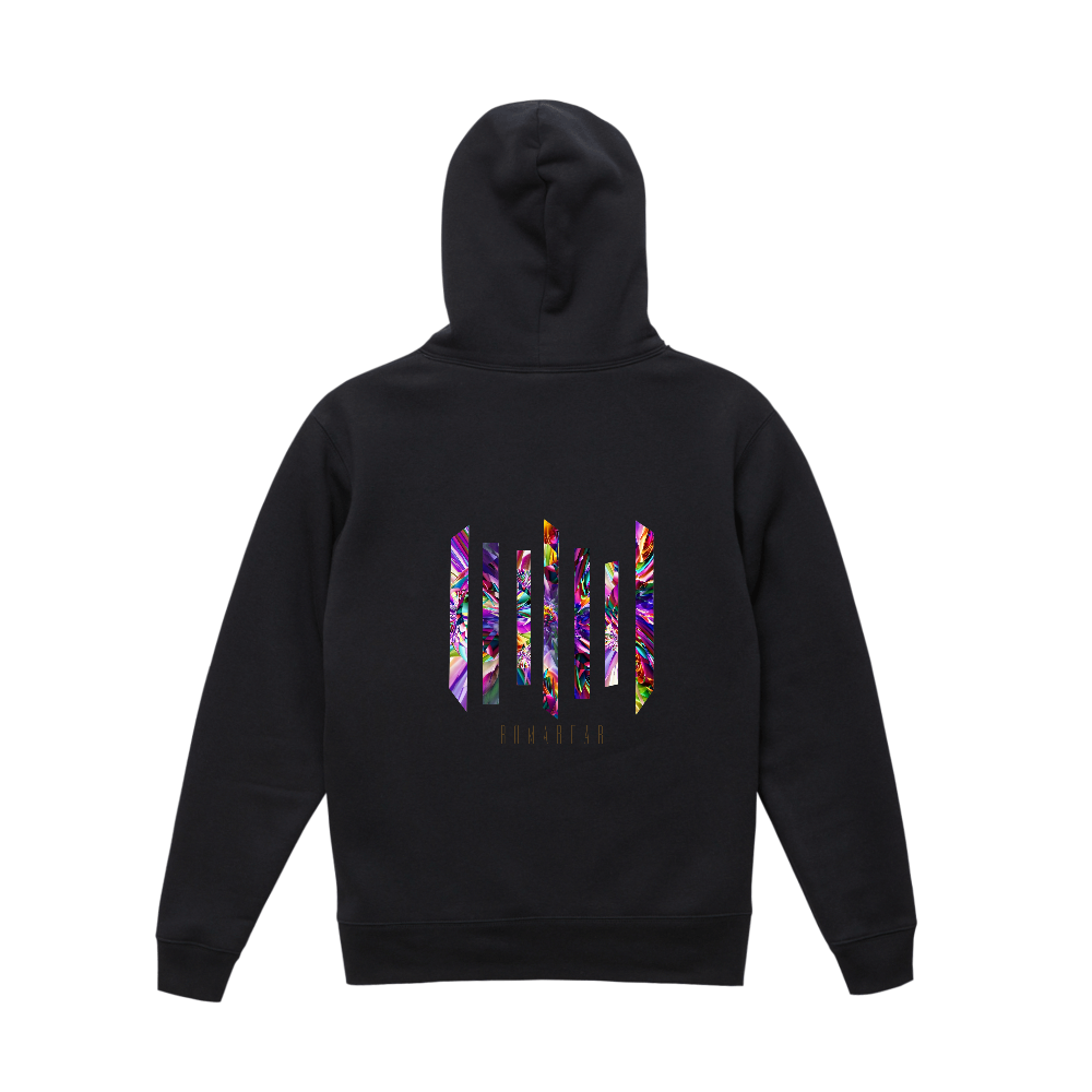 パーカーにはフードがある為 以前無料デザインでTシャツ作成してプリントの位置を変え パーカーにプリントしてみたした。