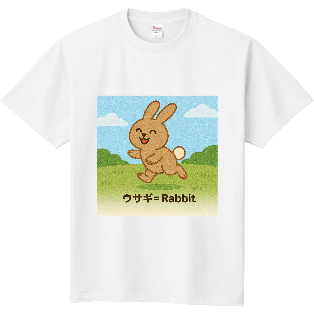 かわいい動物イラストと英語名をデザインした、学べて楽しいTシャツ。