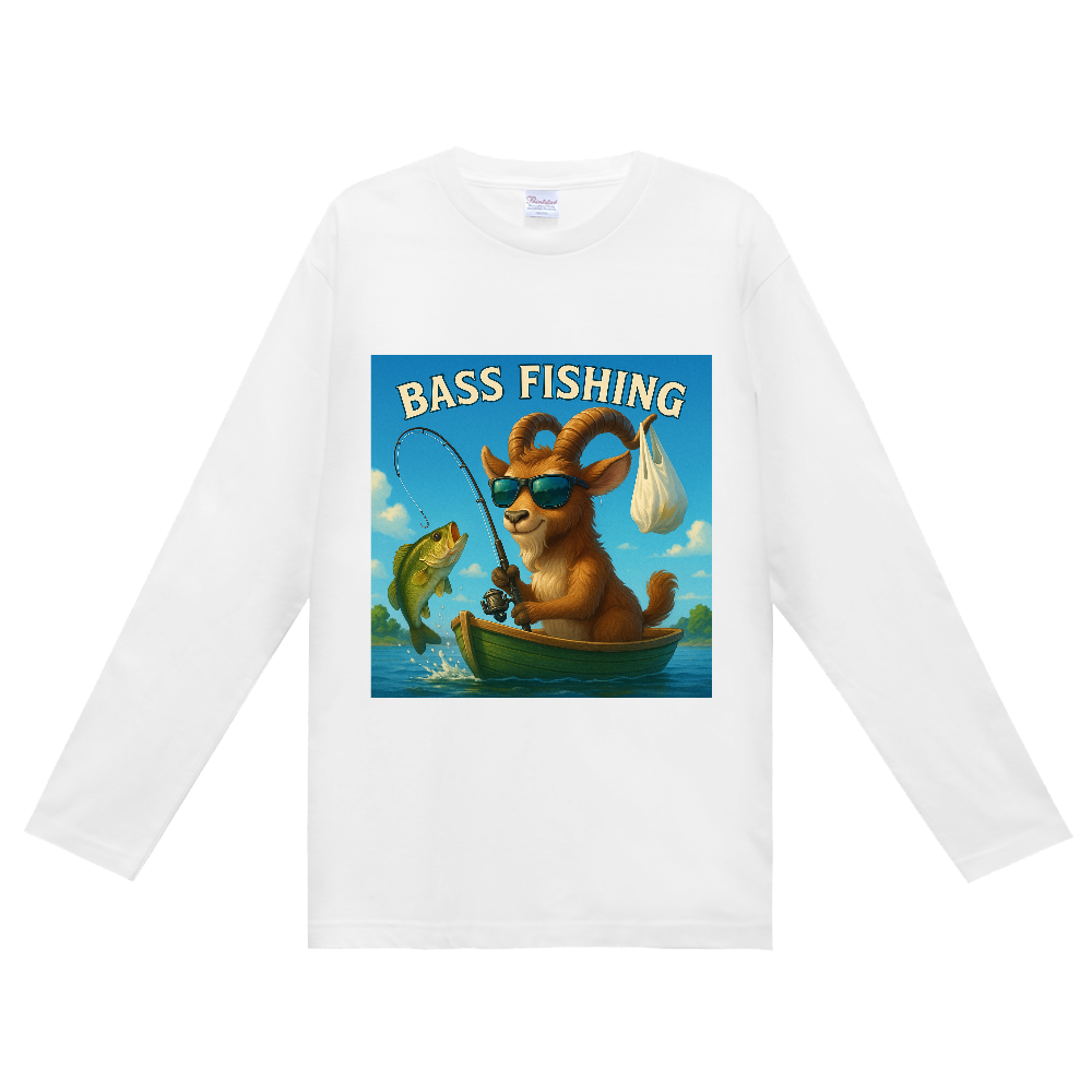 大きなサングラスをかけた山羊が、ブラックバス釣りを楽しむユニークなイラストをデザインしたTシャツです。 右のツノにはコンビニ袋をぶら下げ、湖上で余裕のフィッシングスタイルを披露。 遊び心とアウトドア感が融合した、他にはない個性的なデザインです。