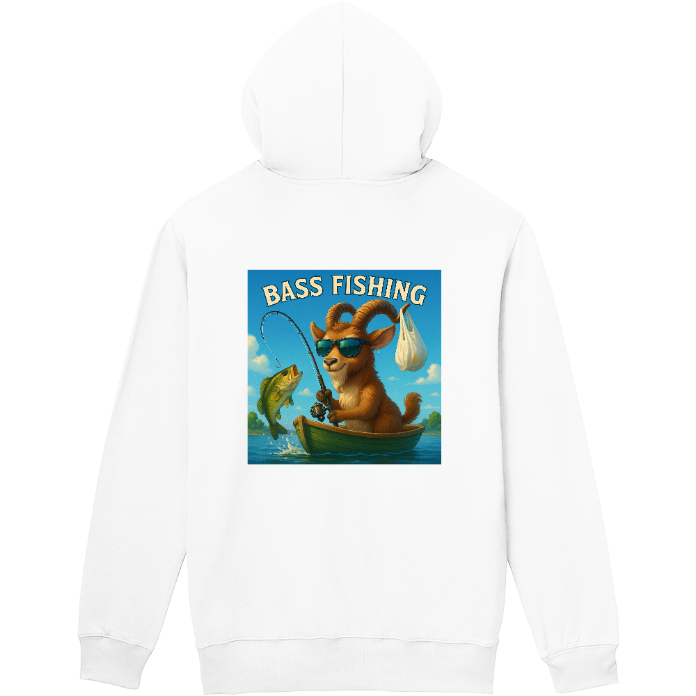 大きなサングラスをかけた山羊が、ブラックバス釣りを楽しむユニークなイラストをデザインしたTシャツです。 右のツノにはコンビニ袋をぶら下げ、湖上で余裕のフィッシングスタイルを披露。 遊び心とアウトドア感が融合した、他にはない個性的なデザインです。