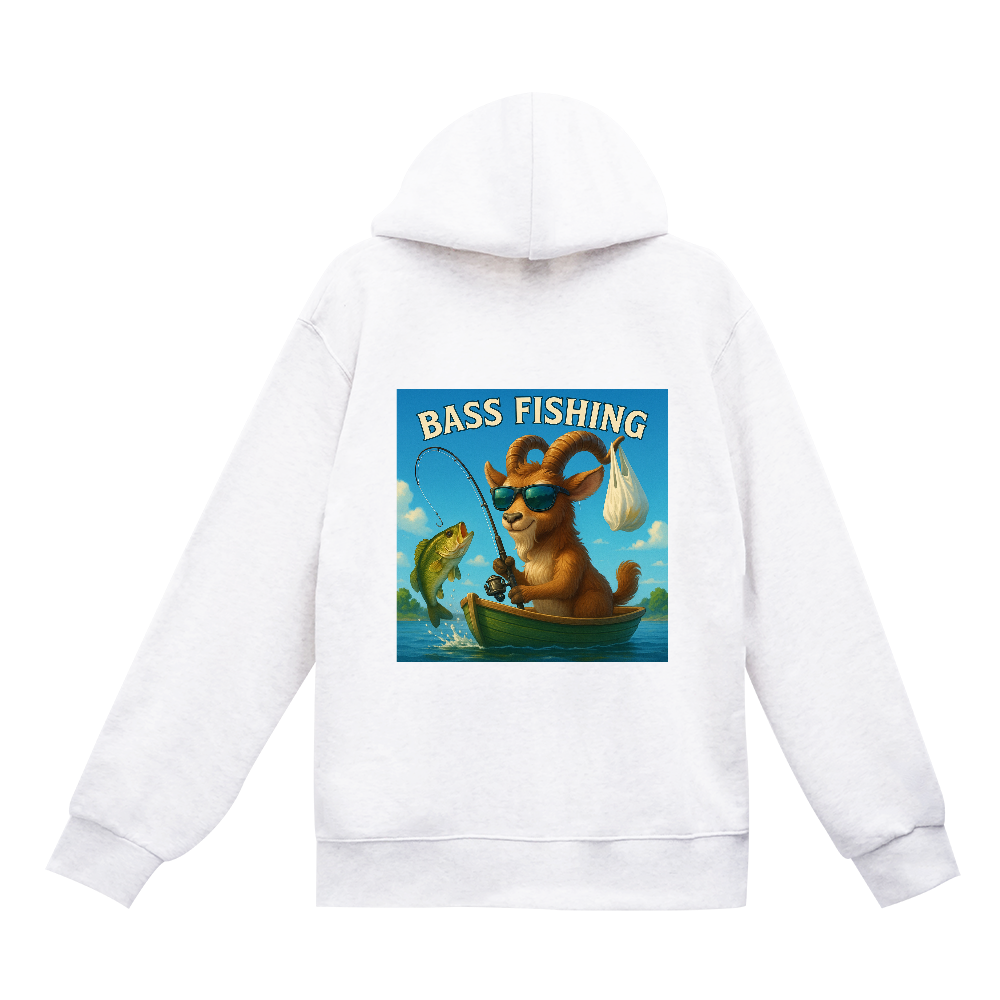 大きなサングラスをかけた山羊が、ブラックバス釣りを楽しむユニークなイラストをデザインしたTシャツです。 右のツノにはコンビニ袋をぶら下げ、湖上で余裕のフィッシングスタイルを披露。 遊び心とアウトドア感が融合した、他にはない個性的なデザインです。